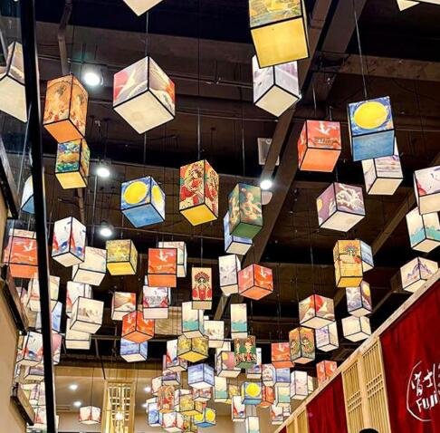 Ka hoʻohana ʻana i ka pale kukui Ukiyo-e i ka lumi ʻaina: Hana i kahi lewa: hiki iā ia ke hana i kahi lewa Kepani a i ʻole ka Hikina no ka hale ʻaina.