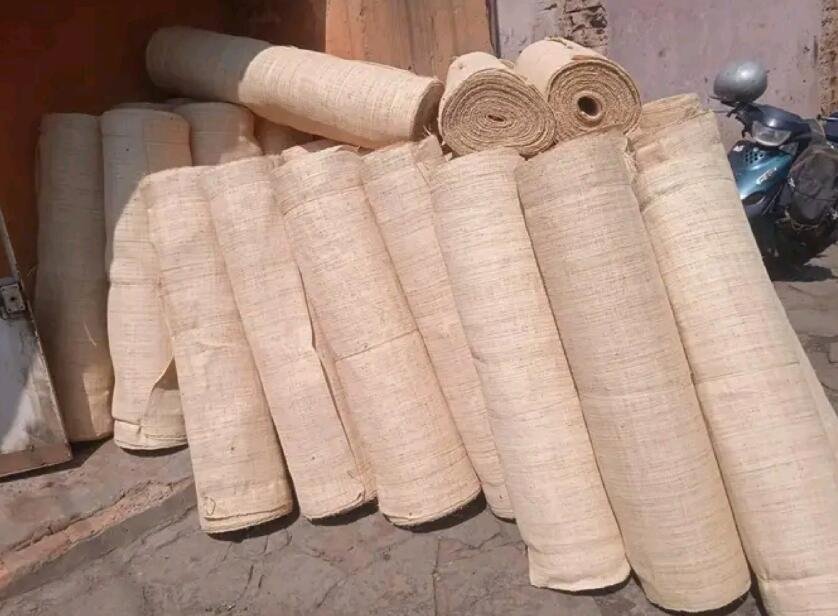 通常, 将编织的拉菲草与PVC连接起来, 或 PS, 将它们卷成卷.